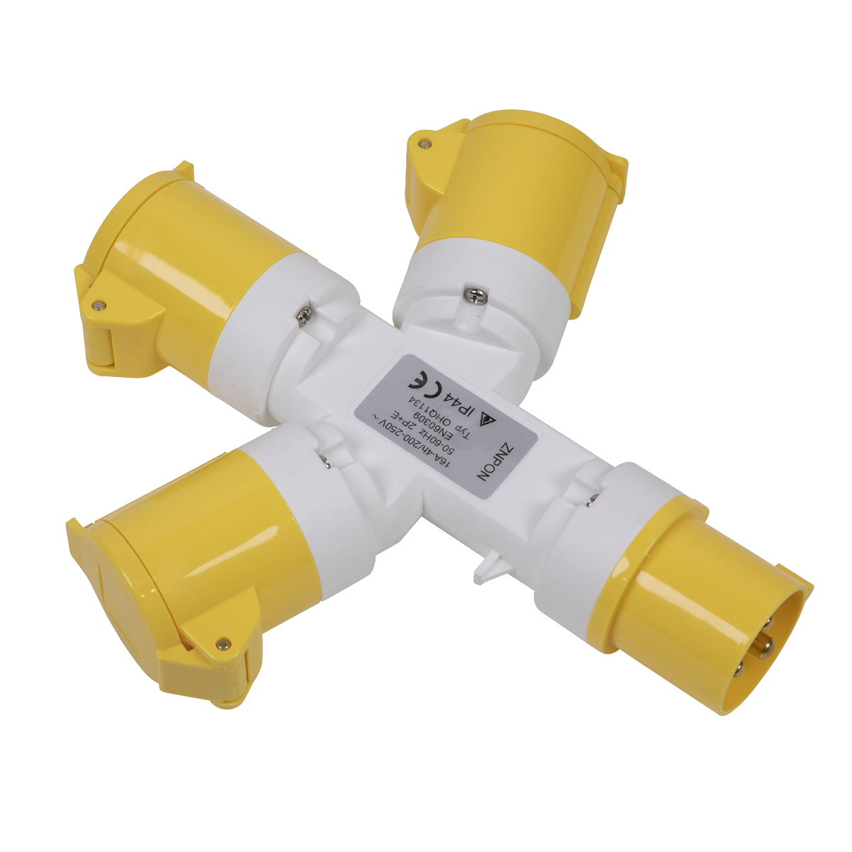 110V 2P+E 3-Way Splitter, 16A. IP44 Rated.