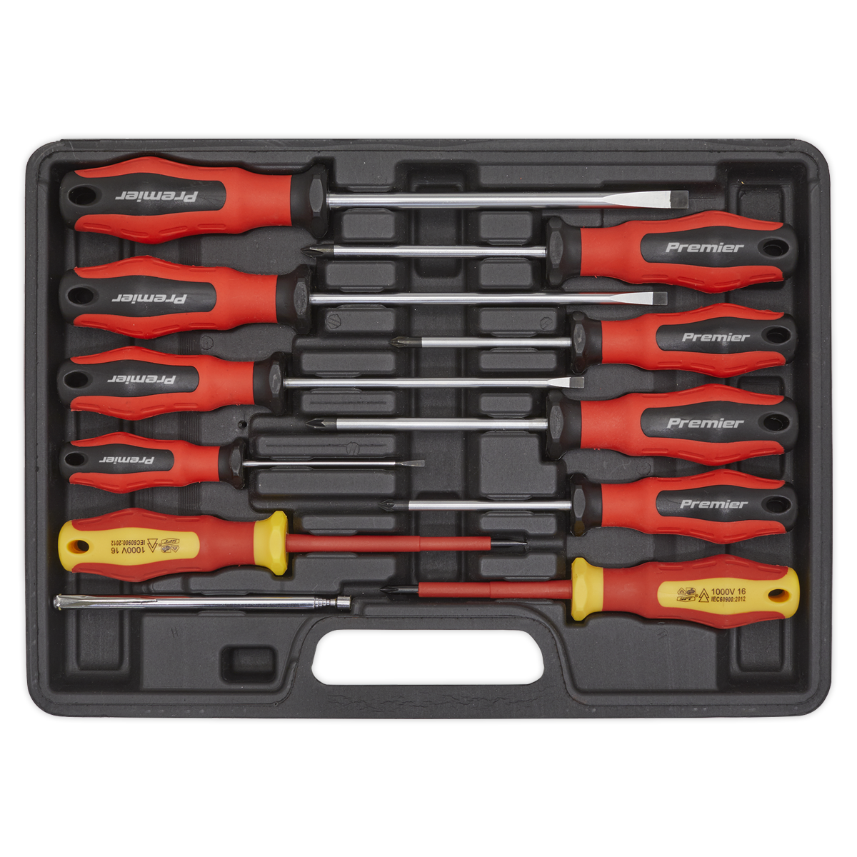 • Contents: Slotted; 3 x 75, 5 x 125, 6 x 150, 8 x 150mm, Phillips; #1 x 80, #2 x 100mm, Pozi: #1 x 80, #2 x 100mm, VDE Screwdrivers – Slotted; 4 x 100mm, Phillips; #1 x 80mm, 110-480mm Telescopic Magnetic Pick-Up Tool.