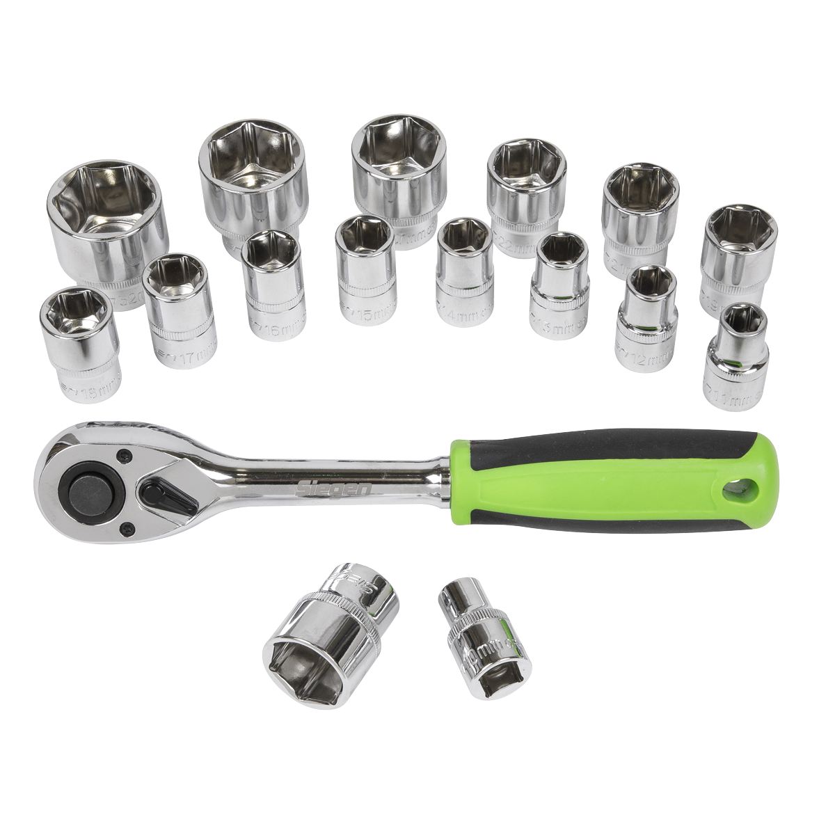• Chrome Vanadium steel socket set, hardened and tempered for strength with a fully polished finish for corrosion resistance.