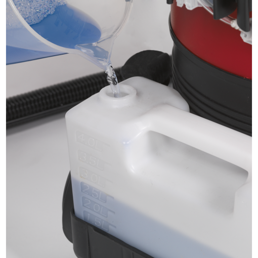 High powered unit ideal for cleaning carpets, car interiors, fabrics and upholstery. Supplied with carpet lance, handheld lance, full wet and dry vacuum accessory kit including stainless steel rigid extension tube, cartridge filter and foam filter. Large capacity drum with external detergent tank for easy filling. Features remote operation controls on nozzle, enabling switching between vacuum and detergent modes uninterrupted. Fitted with two fixed wheels and two castors. Order Sealey detergents Model No’s VMR921S 1L or VMR925S 5L.